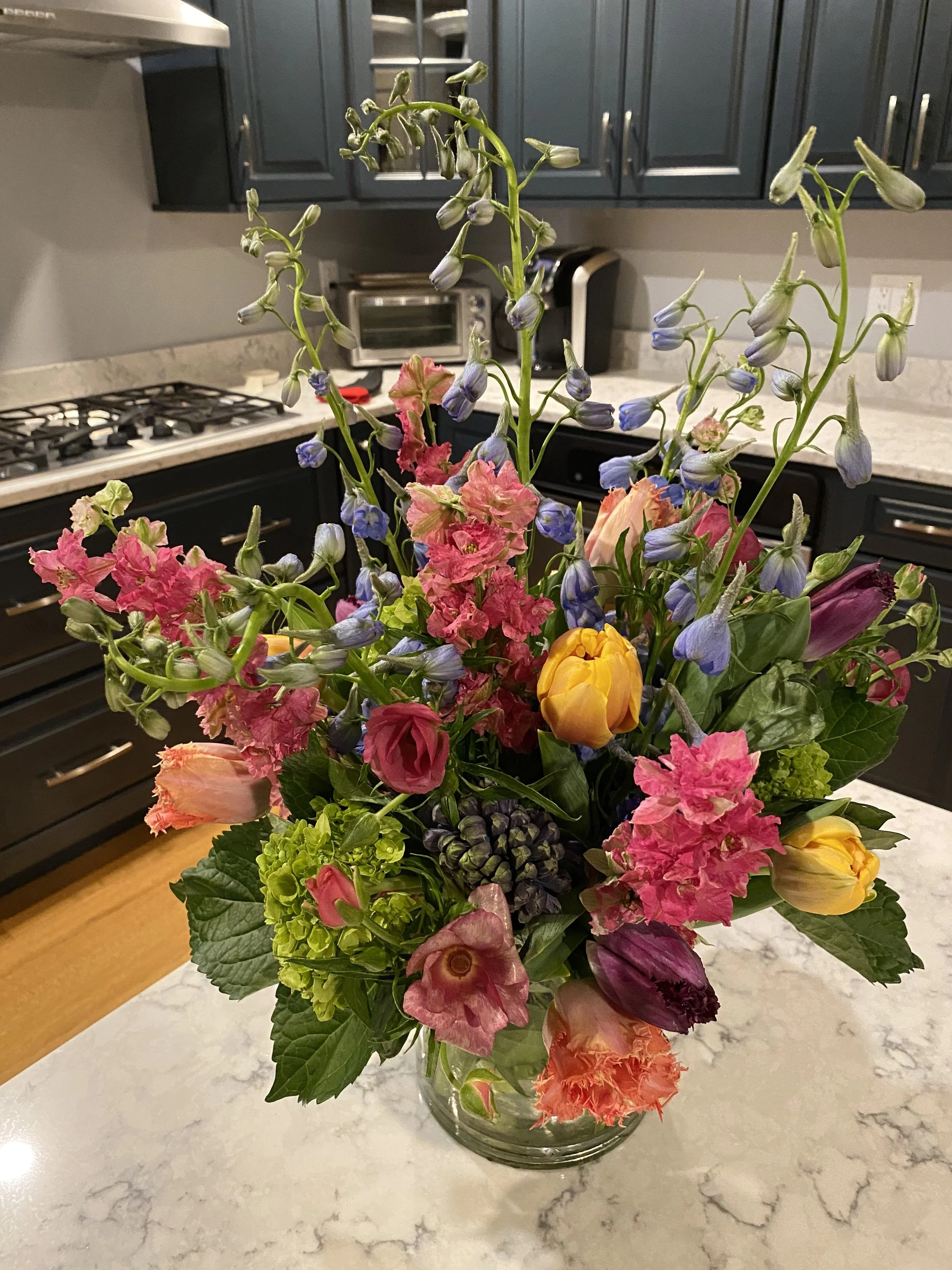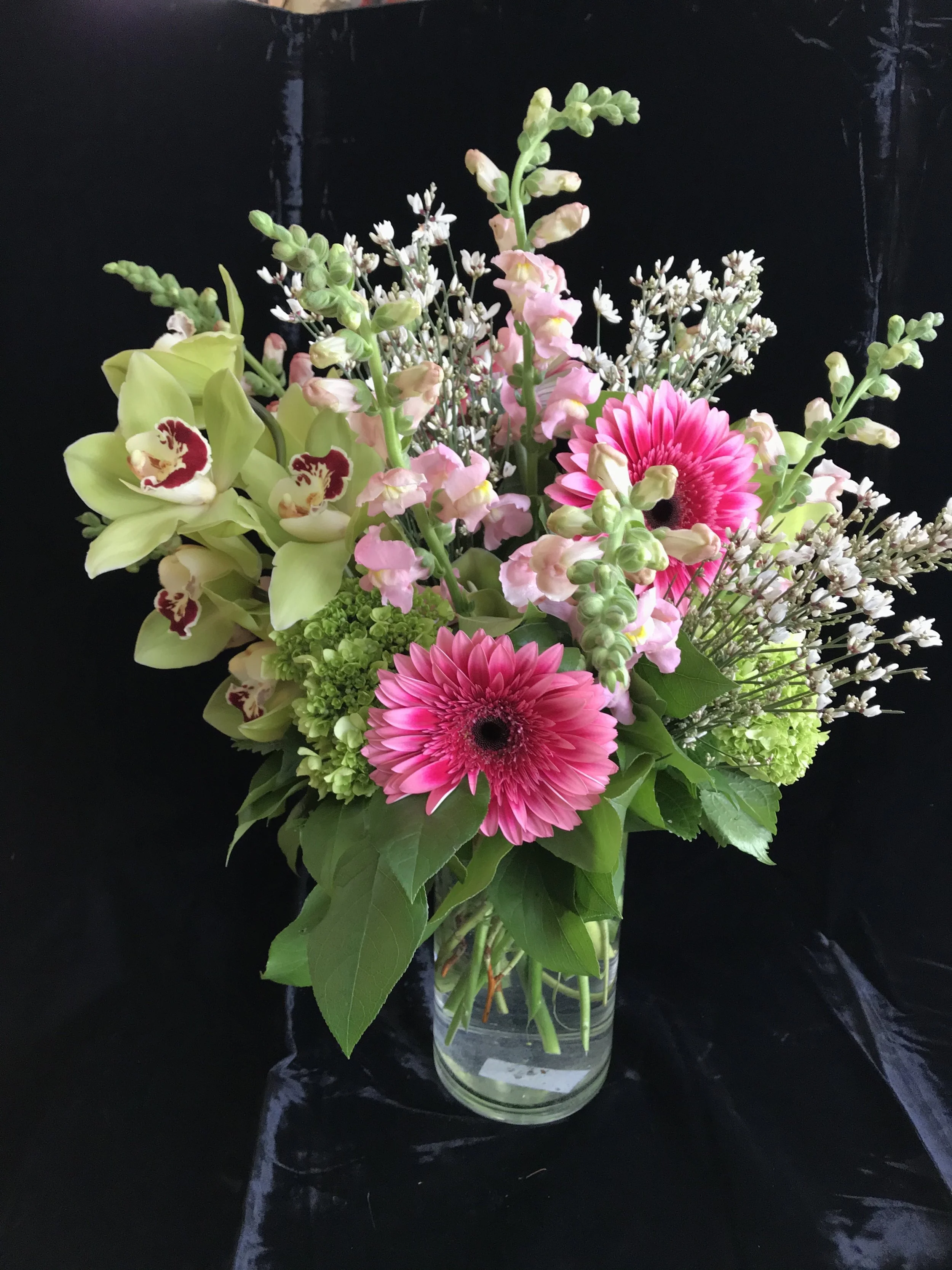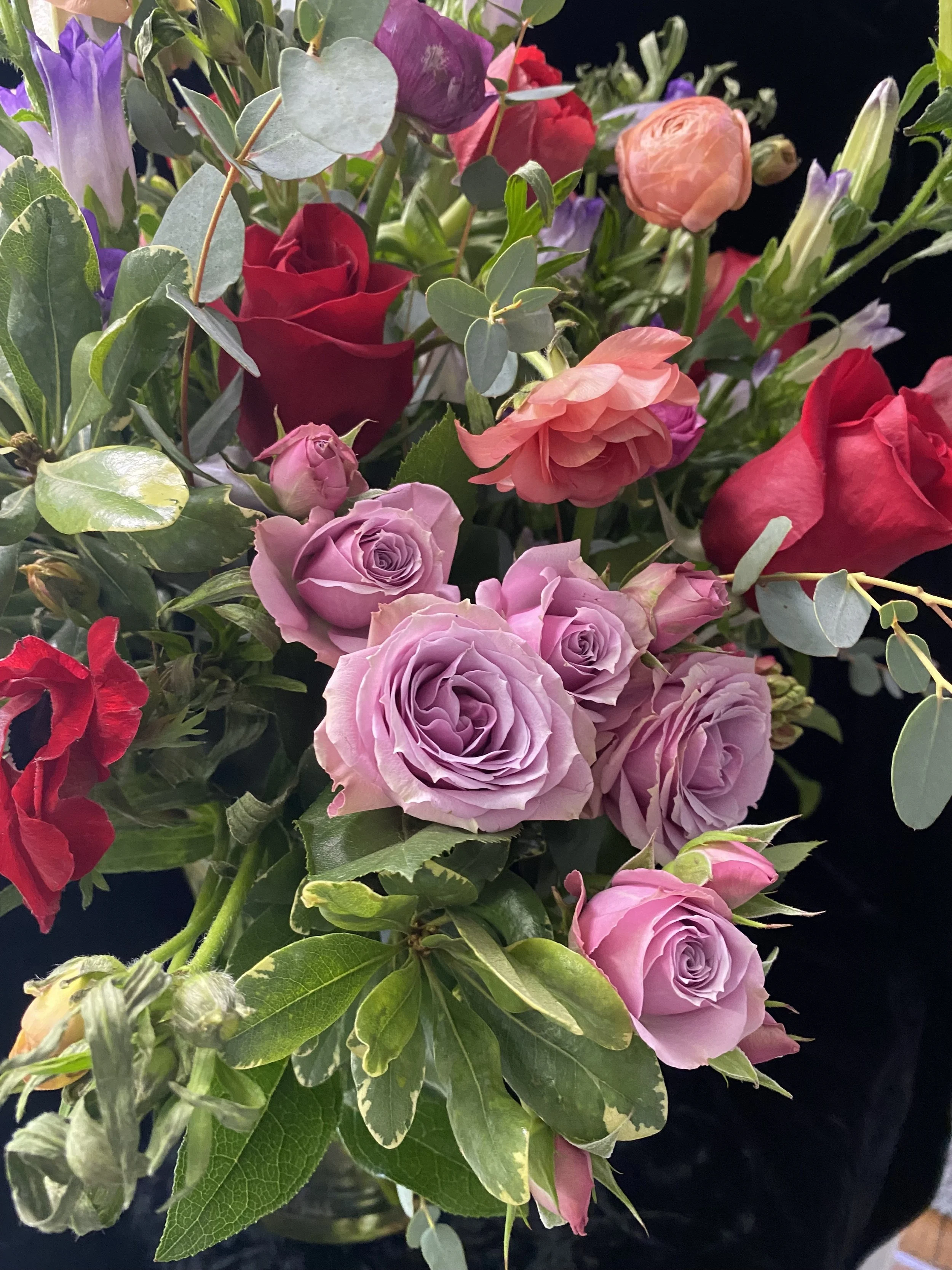 Please list any special requests, such as types of flowers to include, specific colors etc. in the order form. Otherwise our designers will put together the freshest mix of Valentine’s inspired flowers in a glass vessel. If you would like roses please specify color and quantity please specify if you prefer in a vase or wrapped in cellophane.